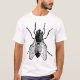 Camisa con el tábano en fuente y larva en la parte posterior.