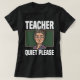Finger-over-lips cartoon icon with chalkboard background. Classic classroom phrase with humor.