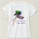 La camiseta básica blanca de las mujeres con una imagen de una máscara púrpura, verde y del oro hermosa del satén en un palillo con las plumas y cintas de coordinación del color, y de la frase "Temps Rouler del Bon de Laissez Les!" (Deje el buen rollo de las épocas) en escritura francesa púrpura. Vea la colección entera de la ropa del carnaval en la sección ESPECIAL de los favores de fiesta de los TACTOS el |.