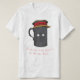 Una taza gris oscuro boca abajo con rasgos faciales y el gorra de Luffy encima