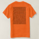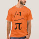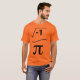Una camiseta con los símbolos que traducen libremente a "mí tengo gusto del pi" en el frente, y con el pi a 1000 lugares en la parte posterior.