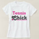 Tennis Chick. Vrouwelijk shirt met de kleuren: roze paars en zwart.