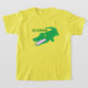 Un cocodrilo verde y la palabra pijao: Alamán, que se puede traducir como: cocodrilo. Obtén esta camiseta amarilla única y de moda para un aspecto único y diferente. Puedes personalizar esta camiseta para darle tu propia apariencia única.