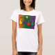 This vibrant T-shirt features four black dancing silhouettes in colors of yellow, purple, and red, set against a gradient background. The design captures the joy and energy of dancing in the bright sunlight, making it a perfect addition to any wardrobe.