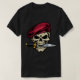 A striking military-style mascot featuring a highly detailed human skull wearing a deep maroon paratrooper beret. The skull clenches a tactical combat dagger between its teeth, featuring a gold hilt and a polished steel blade. The artwork uses a clean, comic-book aesthetic with heavy black outlines and subtle cel-shading, making it ideal for apparel, gaming avatars, or unit insignia. The neutral gray background ensures the vibrant reds and gold accents pop with intensity.