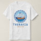 Therasia, camiseta de hombres griegos con un diseño de un antiguo barco griego y letras de estilo griego. Este diseño presenta un barco de la Antigua Grecia y el patrón de líneas clave griegas en un círculo con el mar y el cielo. Este diseño de tipo griego hace de esta teja un regalo o recuerdo ideal para llevar o vestirse de vacaciones en Therasia.
