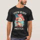 El color es muy bonito al natural, como la foto. El tejido es suave y de buena calidad. Sin defectos en el tintado, ni hilos sueltos o descosidos. Bien la impresión. Los bordes de las letras y el dibujo son nítidos, y el color contrasta muy bien con el de la camiseta.