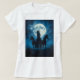 Three majestic black horses standing proudly under the glow of a full moon. The scene is bathed in a mysterious, blue-tinged light, and the low grasses in the foreground add to the wildness and natural feel. The horses have white markings on their foreheads, which contrast sharply with their dark coats.