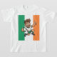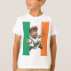 A bold, cartoon rugby hero leaps forward in triumph, grinning wide with rugby ball tucked tight and a confident thumbs-up. Set against Ireland’s green-white-orange, the design radiates power, pride, and unstoppable momentum.
