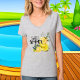 Camiseta con cuello en V de mujer, Negro, XL de adulto