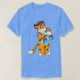 El color es muy bonito al natural, como la foto. El tejido es suave y de buena calidad. Sin defectos en el tintado, ni hilos sueltos o descosidos. Bien la impresión. Los bordes de las letras y el dibujo son nítidos, y el color contrasta muy bien con el de la camiseta.