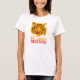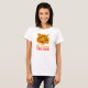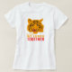 Dibujo de una cara de tigre o tigres de colores negros y naranjas. El tigre o la tigresa se lame los labios. Texto Hoy almorzamos juntos. Camiseta de mujer. Texto La tigresa está ahí en la parte de atrás. Puede cambiar o eliminar el texto y la imagen. No te olvides de elegir el color y el tono de la ropa.