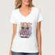 Camiseta con cuello en V de mujer, Negro, XL de adulto