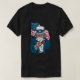 El color es muy bonito al natural, como la foto. El tejido es suave y de buena calidad. Sin defectos en el tintado, ni hilos sueltos o descosidos. Bien la impresión. Los bordes de las letras y el dibujo son nítidos, y el color contrasta muy bien con el de la camiseta.