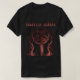 Esta camiseta roja, con un "santuario obliviano" de tipo árbol, incluye una cruz, cráneos y una estrella malvada. Perfecto para los aficionados al rock y metalizado a los que les encantan los diseños atrevidos.