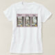 Tee con tres imágenes de un perro blanco con un juguete esperando que alguien le arroje el juguete.