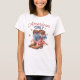 Este moderno diseño americano de Girly Cowgirl presenta botas de vaquera con un arco patriótico. Algunas palabras están en un tipo de letra con forma de cuerda.