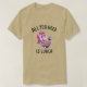 El color es muy bonito al natural, como la foto. El tejido es suave y de buena calidad. Sin defectos en el tintado, ni hilos sueltos o descosidos. Bien la impresión. Los bordes de las letras y el dibujo son nítidos, y el color contrasta muy bien con el de la camiseta.