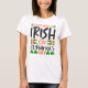 El texto estilizado de esta camisa dice "Todo el mundo es IRLANDÉS en el DÍA DE SAN PATRICK". Botellas de cerveza y rocas de champú completan el diseño. Los colores predominantes son el verde, el naranja y el negro.
