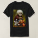 Una anciana fantasmal sostiene una calabaza, mientras que un esqueleto se baña en un vaso de té al lado de una linterna tallada de jack-o'. La escena de la mesa con hojas de otoño diseminadas por la zona. Photoshop CS6 de arte digital