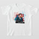 La camiseta en sí, bastante bien. Un poco grande, pero supongo que en dos lavados entallará mejor. Aquí tengo el mismo problema que antes, que el dibujo ocupa toda la camiseta, y por internet me había imaginado que era más pequeño.