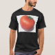 El color es muy bonito al natural, como la foto. El tejido es suave y de buena calidad. Sin defectos en el tintado, ni hilos sueltos o descosidos. Bien la impresión. Los bordes de las letras y el dibujo son nítidos, y el color contrasta muy bien con el de la camiseta.