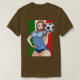 El color es muy bonito al natural, como la foto. El tejido es suave y de buena calidad. Sin defectos en el tintado, ni hilos sueltos o descosidos. Bien la impresión. Los bordes de las letras y el dibujo son nítidos, y el color contrasta muy bien con el de la camiseta.