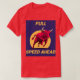 El color es muy bonito al natural, como la foto. El tejido es suave y de buena calidad. Sin defectos en el tintado, ni hilos sueltos o descosidos. Bien la impresión. Los bordes de las letras y el dibujo son nítidos, y el color contrasta muy bien con el de la camiseta.