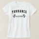 Camiseta femenina de White Torrance para mostrar que estás orgulloso de ser de esta hermosa ciudad. Este diseño de texto curvo de la letra muestra "Torrance" en un tipo de letra tipo losa con "California" y "Golden State" en elegantes fuentes de título con palmeras a ambos lados.