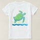 Azules, verdes y amarillos crean esta escena de vida marina de una tortuga y el fondo del mar...aguas cristalinas que permiten ver la arena dorada amarilla.