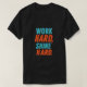 El diseño de la camiseta muestra la inspiradora frase "Trabajar duro, brillar duro" en una fuente vibrante y multicolor. El texto es atrevido y llamativo, destacándose sobre un fondo amarillo brillante. El diseño transmite un mensaje de motivación, perseverancia y recompensa, inspirando a los usuarios a poner el esfuerzo y cosechar los beneficios.