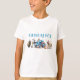 Camiseta de cumpleaños para un niño que celebra con un fiesta de la granja. Tejido blanco con diseño de animales de granja. Cada animal lleva puesto un gorra fiesta o un cuerno fiesta. Entre los animales que forman parte del diseño se incluyen un toro, una vaca, un cordero, un gatito, un cachorro, un cerdo, un burro y un conejo. El texto azul coincide con el tractor de la granja azul en el centro. Perfecto para el cumpleaños de un granero o para el zoológico de mascotas.