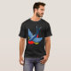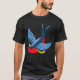 Un tatuaje tradicional azul y rojo tragado en un fondo negro.
