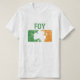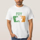 Una camiseta que ofrece un trébol blanco, verde, y anaranjado irlandés apenado con el apellido Foy.