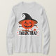 Celebra Halloween de manera espeluznante con esta obra de arte de la Trata de Calabaza con una calabaza super linda con un hacha de daga y un fantasma. La obra de arte lleva un gorra, añadiendo un aspecto de misterio a la figura fantasmal.