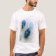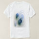 Una interesante vista retrato de tres conchas marinas de fondo azul y blanco con temática de remolinos. Es sólo un recordatorio del océano y sus maravillosos tesoros.