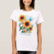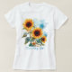 Tres girasoles acuáticos son como el sol contra un cielo azul vibrante con el texto "Country Chica". Mantenga el texto, quítelo o añada el suyo propio.