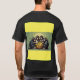 El color es muy bonito al natural, como la foto. El tejido es suave y de buena calidad. Sin defectos en el tintado, ni hilos sueltos o descosidos. Bien la impresión. Los bordes de las letras y el dibujo son nítidos, y el color contrasta muy bien con el de la camiseta.