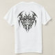 A complex, symmetrical piece of tribal line art that forms a tapered, heart-like silhouette. The design features elegant spiral flourishes at the top and interlocking sharp blades throughout, rendered with a metallic, shaded texture
