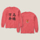 The four characters are an idiom typically translated as ten thousand horses galloping and expresses a powerful and unstoppable momentum. This idiom is used when describing situations involving life philosophy. It originates from ancient Chinese literature.