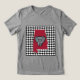A herringbone background with the state of Alabama and an elephant. Crimson and gray colors on black and white herringbone.