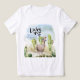 Llama de color agua dulce con detalles decorativos en la cabeza. El paisaje de fondo es desértico, con cactus y arena. Corto texto, te amo,