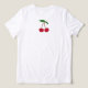 Camiseta divertida con un ilustracion de cerezas y sus hojas verdes, y dos textos de personalizable rojo: regalo perfecto para jardinero, verduras o amantes de las frutas! En la parte de atrás hay un diseño de cerezo que permite sustituir las fotos por las suyas.