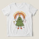 Celebra la temporada con este diseño original y reconfortante. Con un alegre personaje de árbol de Navidad, con luces festivas y botas acogedoras, parados bajo un vibrante arcoiris con el mensaje "Amor, paz, Navidades". Esta imagen divertida y colorida exuda vibraciones retro y es perfecta para difundir energía positiva y alegría navideña con un toque de nostalgia.