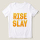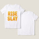 Cada mañana te acompaña con nuestra camiseta motivacional Rise y Slay unisex. Perfecto para entrenamientos en gimnasia, ropa de calle informal o vibraciones diarias, este atrevido tee gráfico inspira confianza y acción. Cómodo para hombres y mujeres, ideal para el obsequio o el estilo personal. Empieza tu día con fuerza — levántate, mata, repite!
