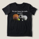 El color es muy bonito al natural, como la foto. El tejido es suave y de buena calidad. Sin defectos en el tintado, ni hilos sueltos o descosidos. Bien la impresión. Los bordes de las letras y el dibujo son nítidos, y el color contrasta muy bien con el de la camiseta.