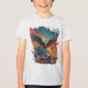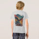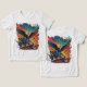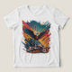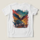 Esta obra de arte dinámica y vibrante representa un águila calva que se eleva sobre una bandera estadounidense, ambientada en un fondo de colores llamativos y pinceles abstractos. La imagen evoca una sensación de patriotismo, libertad y orgullo nacional.