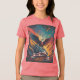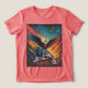 Esta obra de arte dinámica y vibrante representa un águila calva que se eleva sobre una bandera estadounidense, ambientada en un fondo de colores llamativos y pinceles abstractos. La imagen evoca una sensación de patriotismo, libertad y orgullo nacional.