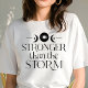Mantente resiliente con esta camiseta empoderante inspirada en boho "Más fuerte que la tormenta". Con símbolos celestes como lunas crecientes y estrellas, este diseño es perfecto para aquellos que abrazan la fuerza frente a la adversidad. La estética en blanco y negro ofrece versatilidad, mientras que el mensaje audaz te recuerda tu poder interior. Ideal para cualquiera que ame las citas motivadoras combinadas con un estilo boho celeste, esta camiseta es elegante y significativa. Úsala como un recordatorio de que eres más fuerte que cualquier desafío que se te presente.