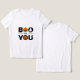 Esparce algo de alegría espeluznante con esta camiseta de Halloween "Boo To You" que combina tipografía moderna audaz con iconos de fantasmas y calabazas. El diseño, limpio y sencillo, sobre un fondo transparente, lo convierte en una elección perfecta para cualquier armario de Halloween.
